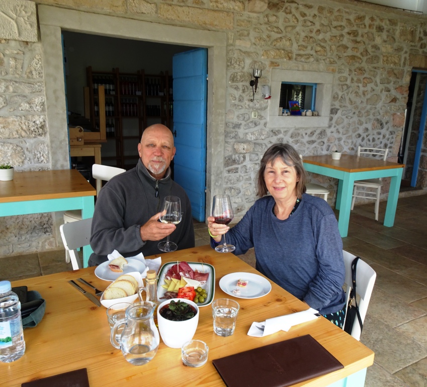 Onward to the little town of Lumbarda on the island of Korcula. It was a rainy day, and we only had a few hours there, but we managed a bit of a hike to a great winery. Grk vineyards. Yep, that is the way it is spelled. No vowels. But they don’t need vowels to make great wine and some fine liquors.