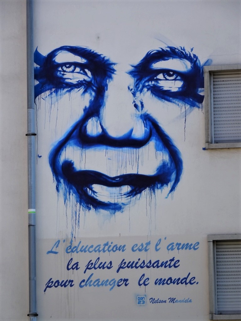 As this city is a university town, education is pretty important. We found this painting with the inscription and felt it to be worth bringing to other’s attention. For those who cannot speak french, the translation is: ‘Education is the most powerful weapon to change the world’ Nelson Mandela.
