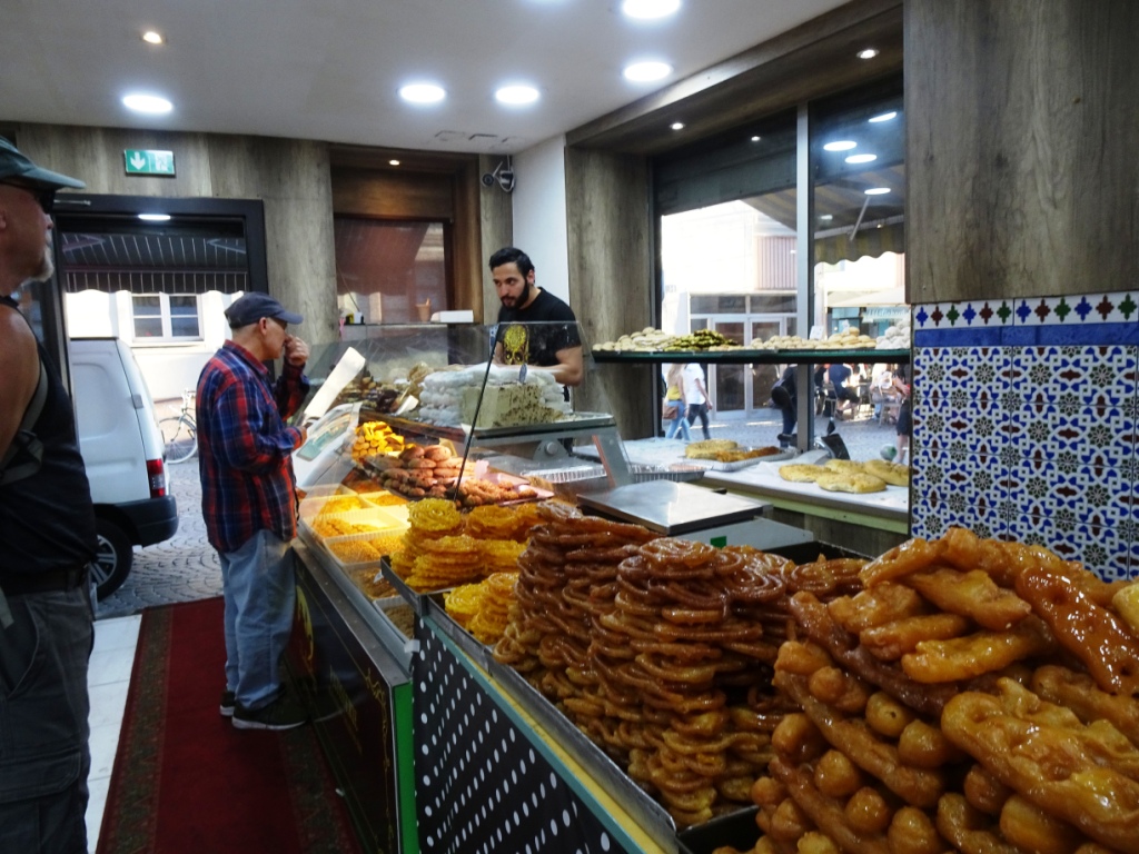 This was also very interesting. This sign is for a Turkish pastry shop. As it was Ramadan, this shop was closed during the day. However, even though they are not open, they work all day making pastries without eating or drinking. Then we went back just before the sun went down and you can see what we found.