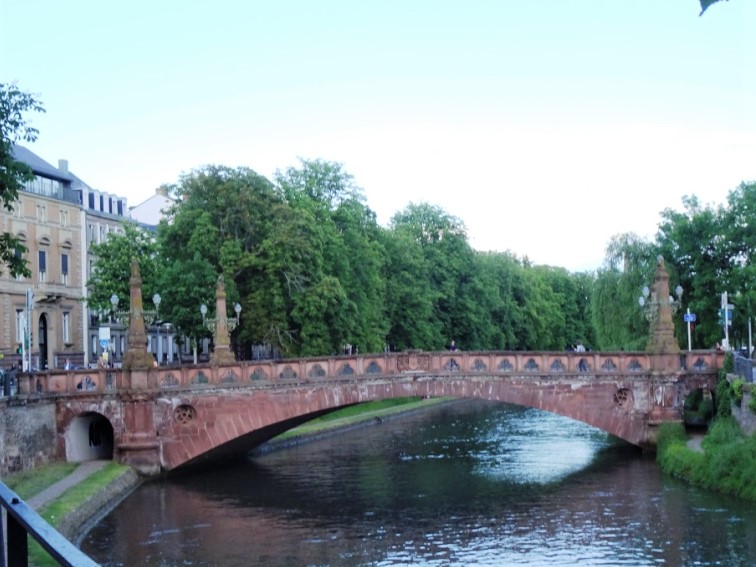 We rented bikes while here so riding around we could see a lot more. This is part of the old town, the small creek being part of one of the rivulets of the Rhine river which separates France from Germany.