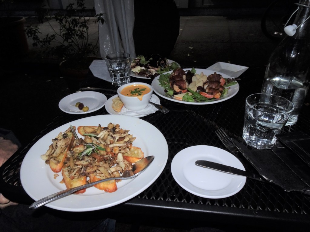 What a treat, the food was delicious: lobster bisque, wild mushroom bruschetta, beet salad and bacon wrapped shrimp. Of course, we ordered way too much food. Made for a yummy lunch the next day.