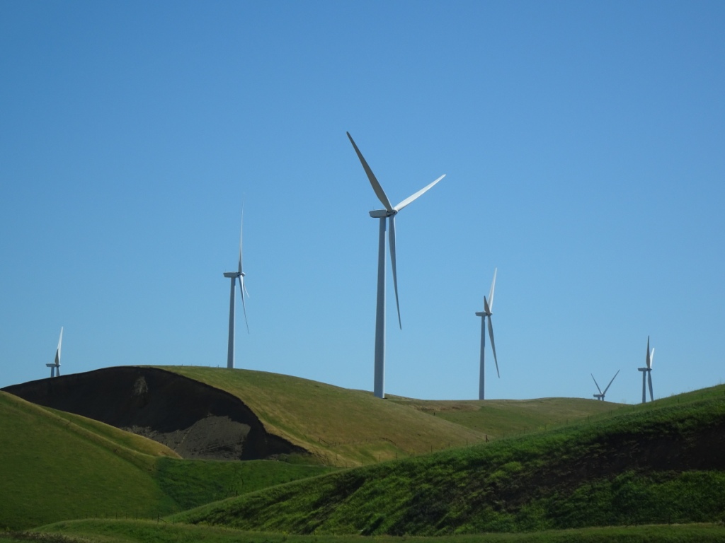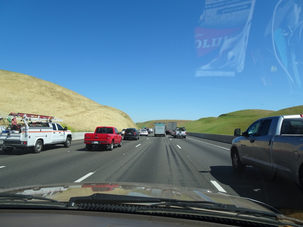 Over Altamont Pass with the wind turbines. Much of the hillsides are still green, interestingly more so on one side of the highway.