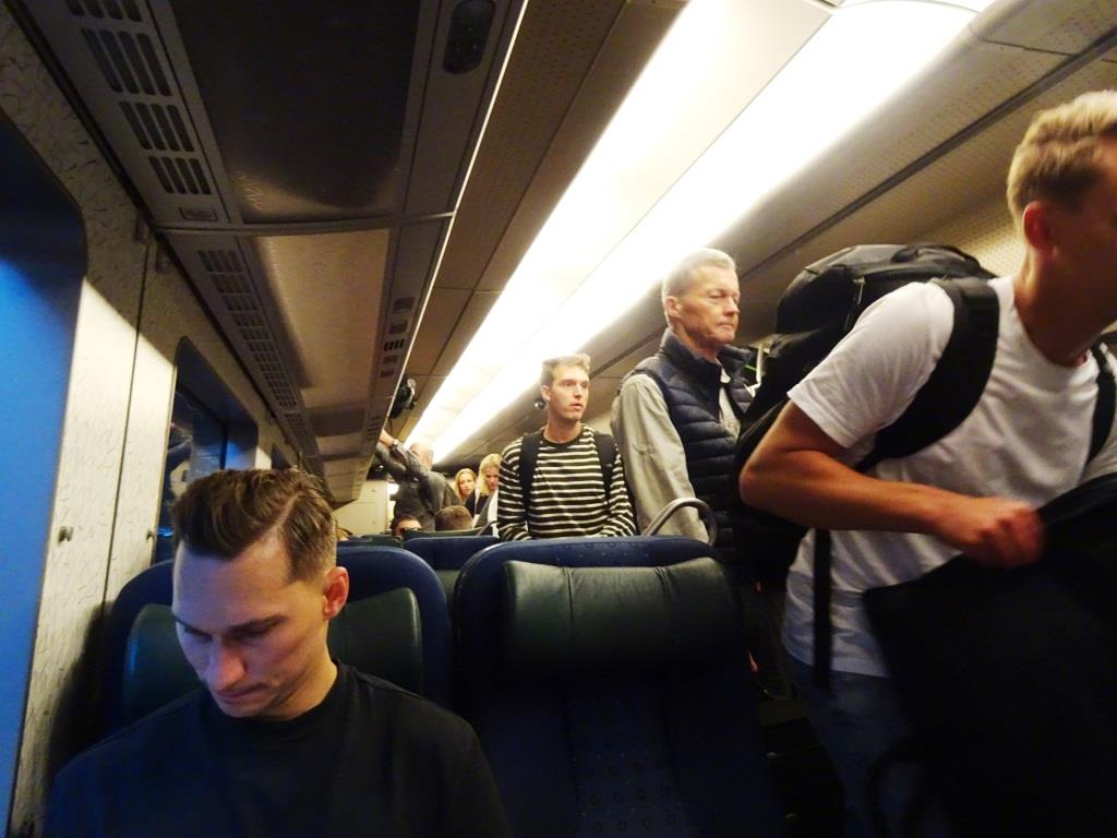 The picture on the left is the train car on the way to Sweden, the one on the right is the train car on the way back to Copehagen, the difference is quite apparent.