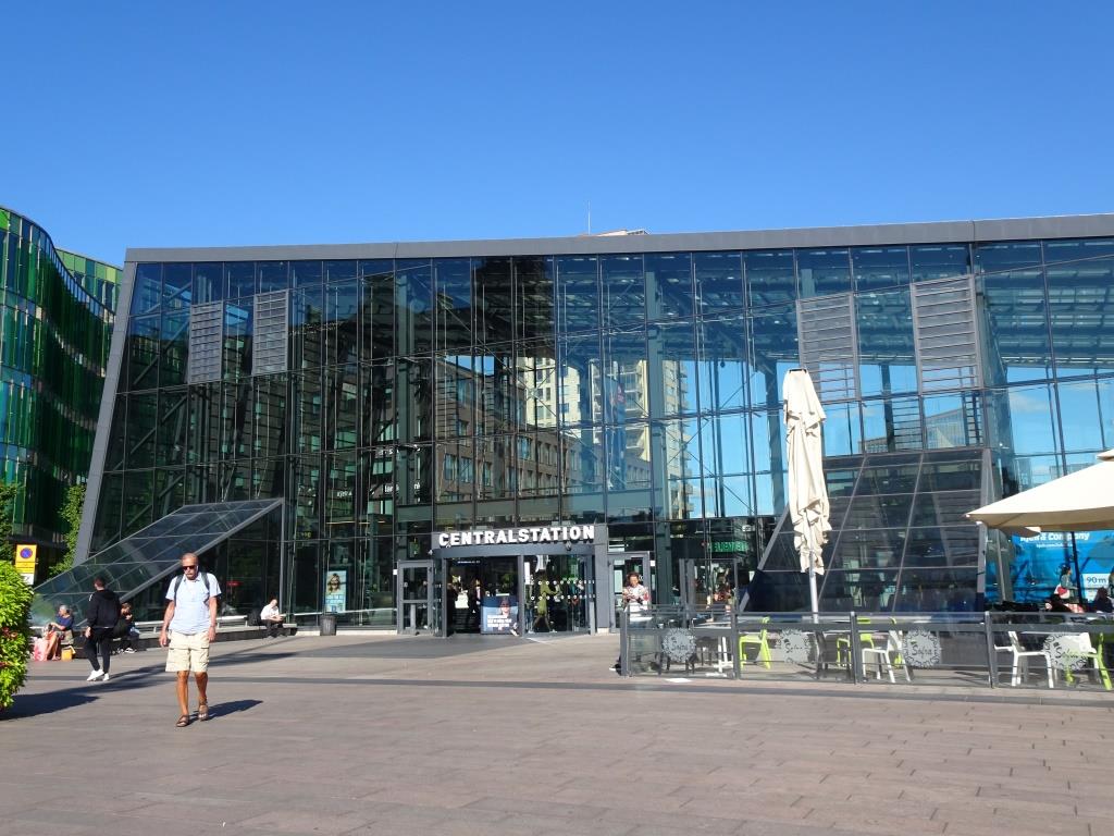 These are two different entrances, one old, one modern, to the same train station in Malmo, Sweden.