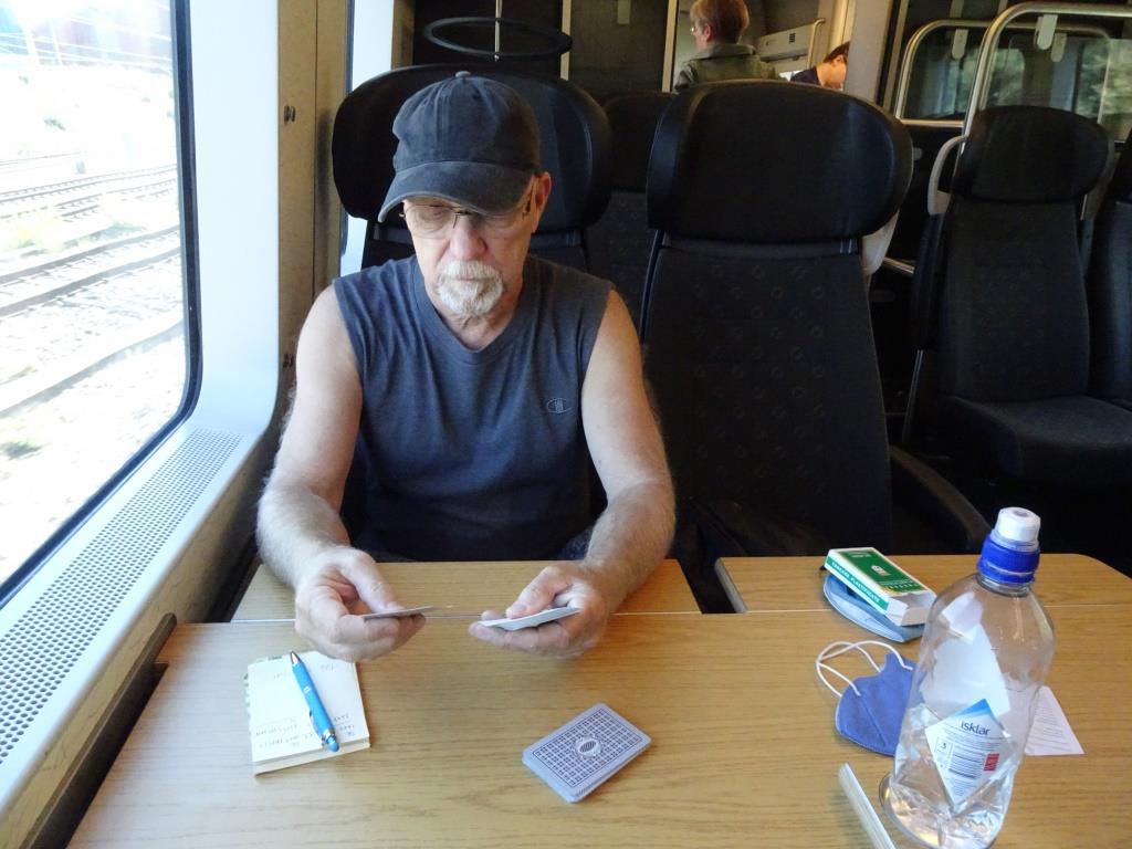 On the train ride back to Copenhagen we pay the extra 10 dollars, for first class seats, much less crowded and a table for playing Scopa.