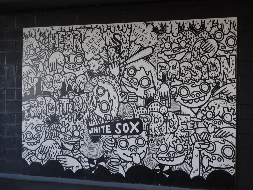 Guaranteed Rate field the home of the Chicago White Sox. Nice enough stadium. Rather new, and not much history, and it was cold. There was a nice mural on the way out: