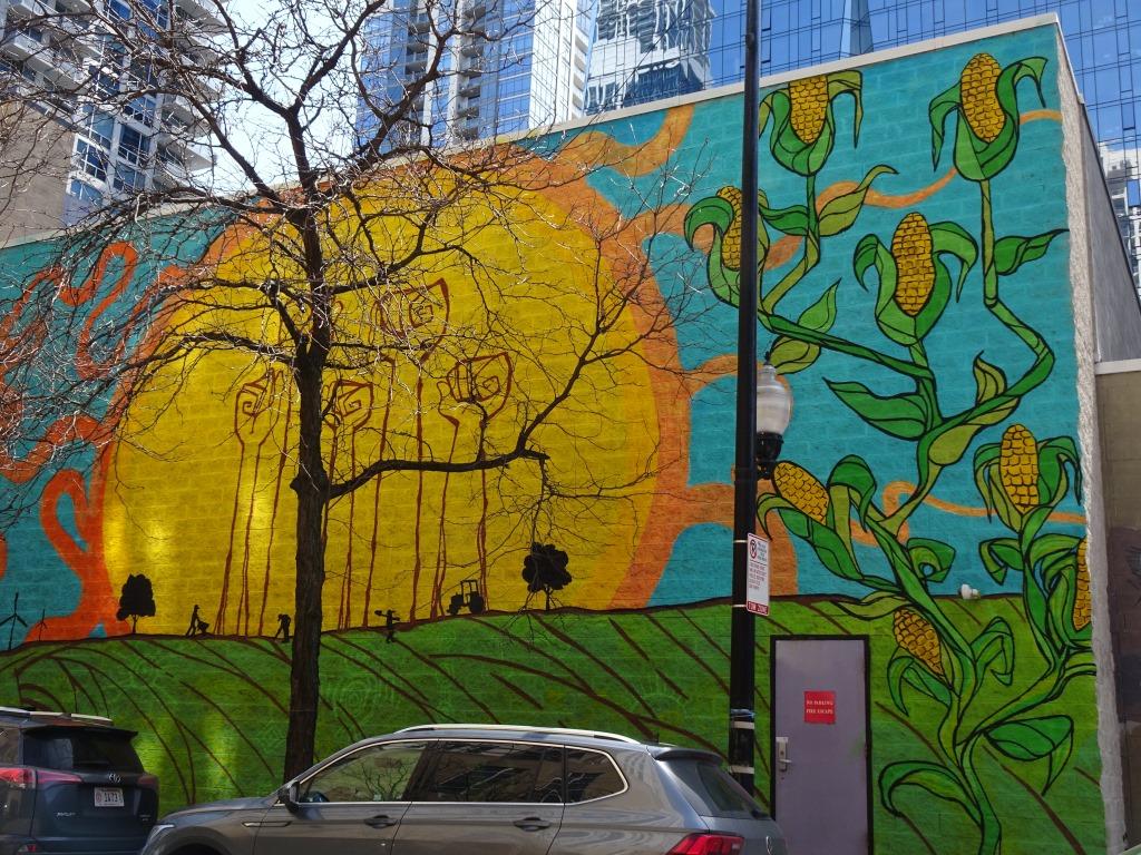 The one in the middle is particularly interesting contrast between the old church and the newer high-rise. But one can only take so many pictures of skyscrapers. So we went on a search for Chicago murals. And there is a lot there, although finding them can be a bit difficult.
