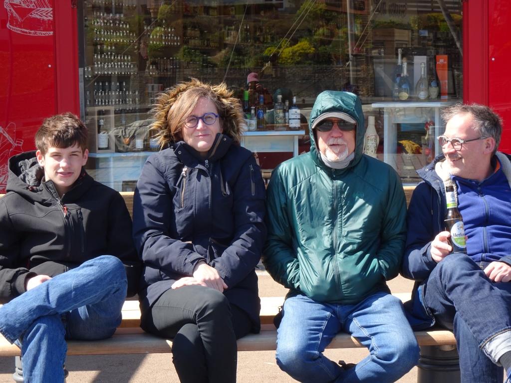 Lots of enriching time with our family, a 50th birthday for one, a solemn walk on Omaha beach where Nancy’s father fought. And notice a rare item in the last picture of the four of us sitting outside in the sun! Sun in Normandy! But also notice that we are very cold. It was very, very cold!